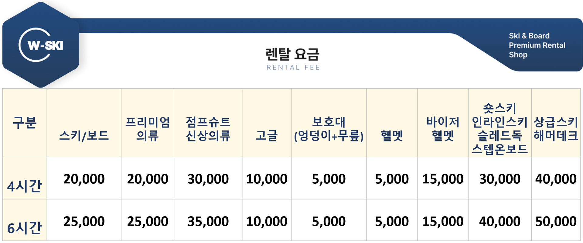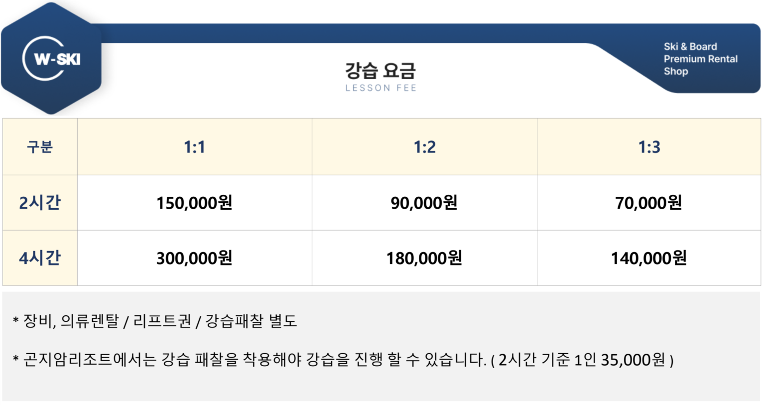 렌탈 & 강습 요금