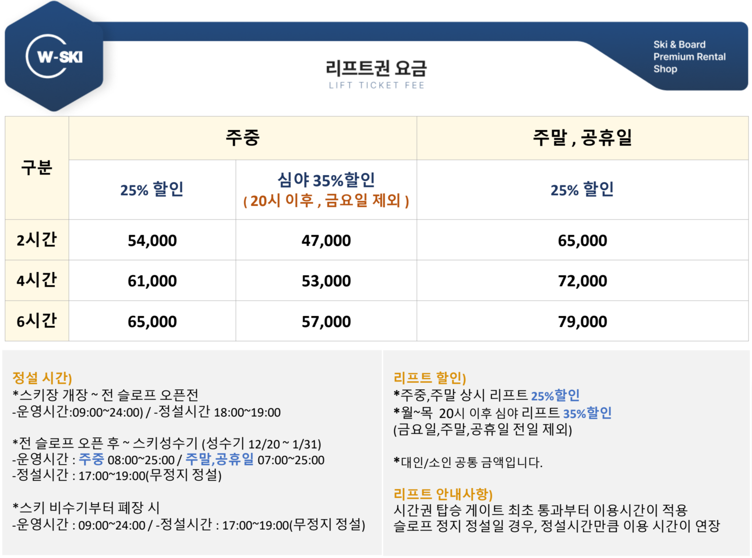 HOME 요금안내 리프트권 · 렌탈 · 강습